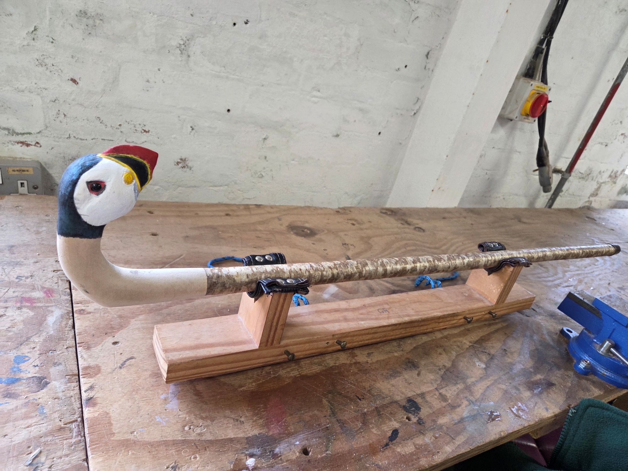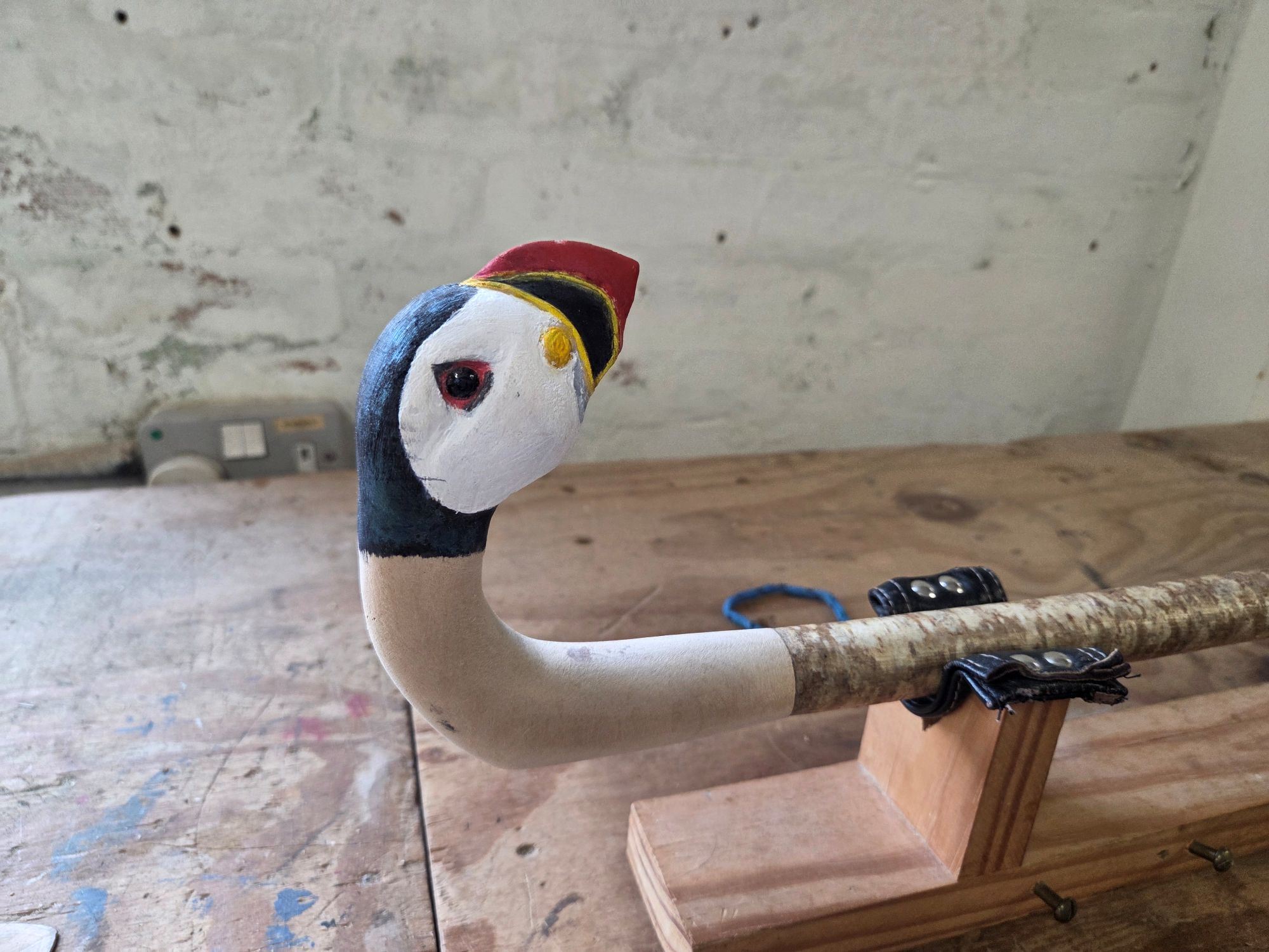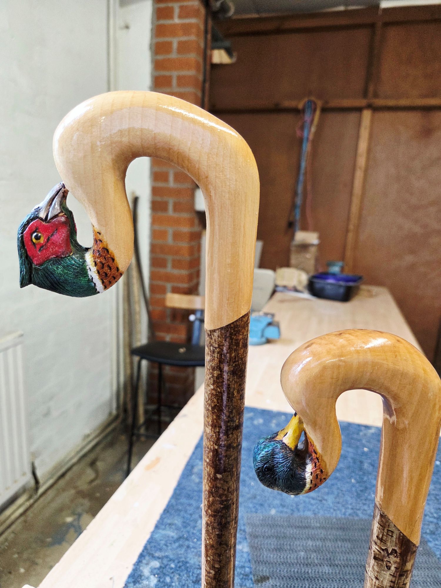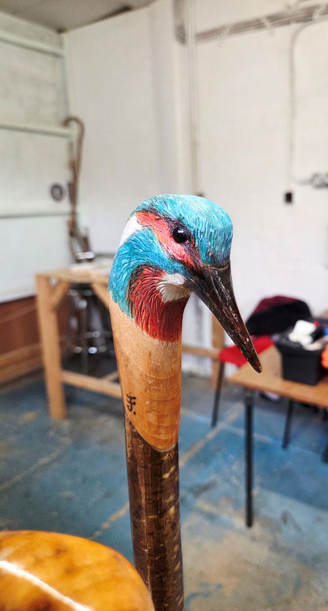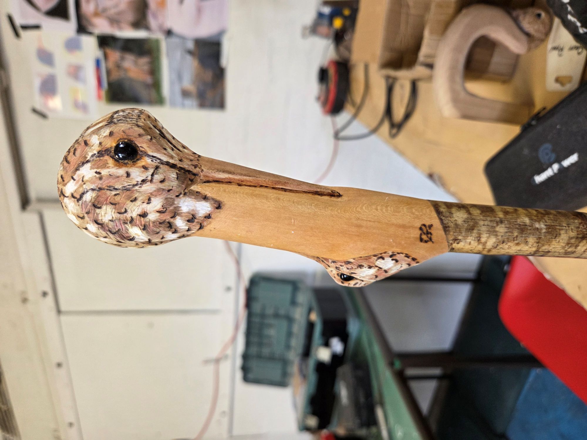 Whether it’s a shepherd’s crook topped with a hand-carved ram’s horn, a thumbstick crowned with a lifelike animal head, or a sleek hiking staff with intricate inlays, every stick tells its own story. Members use a variety of materials — from seasoned hazel and blackthorn to antler, horn, and exotic woods — and often add decorative flourishes such as carved wildlife, polished collars, or engraved details along the shaft.